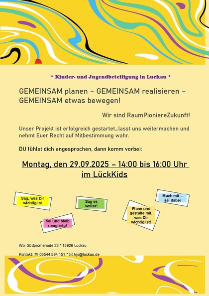 Kinder- und Jugendbeteiligung in Luckau - Nächste Zusammenkunft am 29.09.2025
