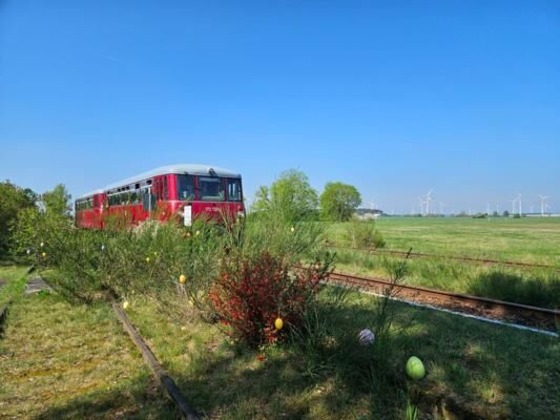 Zum Osterfest pendeln wir, mit unseren festlich geschmückten Zügen, zwischen Luckau und Lübben durch den erwachenden Frühling. Entlang unserer Bahnstrecke, zwischen Wäldern und Feldern, hoppelt auch der Osterhase umher. Jedoch an diesem Ostertag reist er mit unseren Zügen und überrascht die kleinsten/ jüngsten Gäste mit kleinen liebevollen Ostergeschenken.